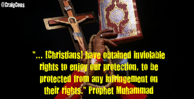 “… [Christians] have obtained inviolable rights to enjoy our protection, to be protected from any infringement on their rights, so that they will be bound to the Muslims both in good and bad fortune.” The Covenant of the Prophet Muhammad with the Christians of the World