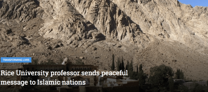 That’s one of Rice University professor of sociology Craig Considine’s favorite verses from ‘The Covenant with the Christian Monks of Mount Sinai’. Dr. Considine recently published a paper featuring four lesser-known covenants from Prophet Muhammad’s time – ‘The Covenant of the Prophet with the Christians of Najran’, ‘The Covenant of the Prophet with the Christians of Persia’, ‘The Covenant of the Prophet with the Monks of Mount Sinai’, and ‘The Covenant of the Prophet with the Christians of the World’.