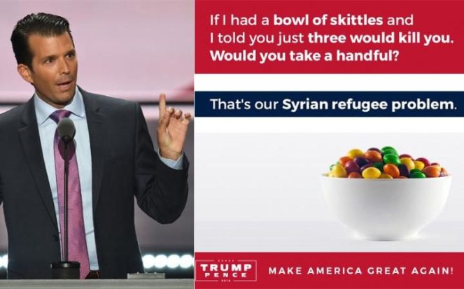 By now, you have probably heard about Donald Trump Jr.’s tweet comparing a bowl of Skittles to Syrian refugees. As The Intercept has pointed out, this kind of rhetoric has deep roots in anti-Semitic Nazi propaganda. The Intercept writes: